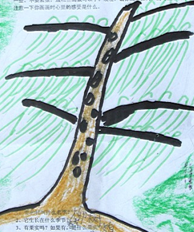 蒙眼分析的話:可以看到如下的信息1、樹干較細(xì)且上面描繪有黑色樹洞,代表缺少生命力,缺少安全感。2、樹畫成被截斷的無頭樹,代表畫作者在成長中有一個嚴(yán)重的創(chuàng)傷,并且缺乏再度向上生長的生命力。3、樹皮描繪成黑色,下垂的紙條被描繪成黑、綠兩色,代表有抑郁傾向。4、描繪成丘狀的地面線,代表繪畫者性格孤僻,不合群,尋求庇護。等等
